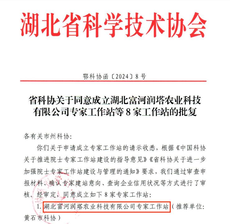 日前,省科协正式批复同意阳新县湖北富河润塔农业科技有限公司成立省级专家工作站,阳新县科技创新再添新动力。至此,阳新县专家工作站建站数量达到26家。