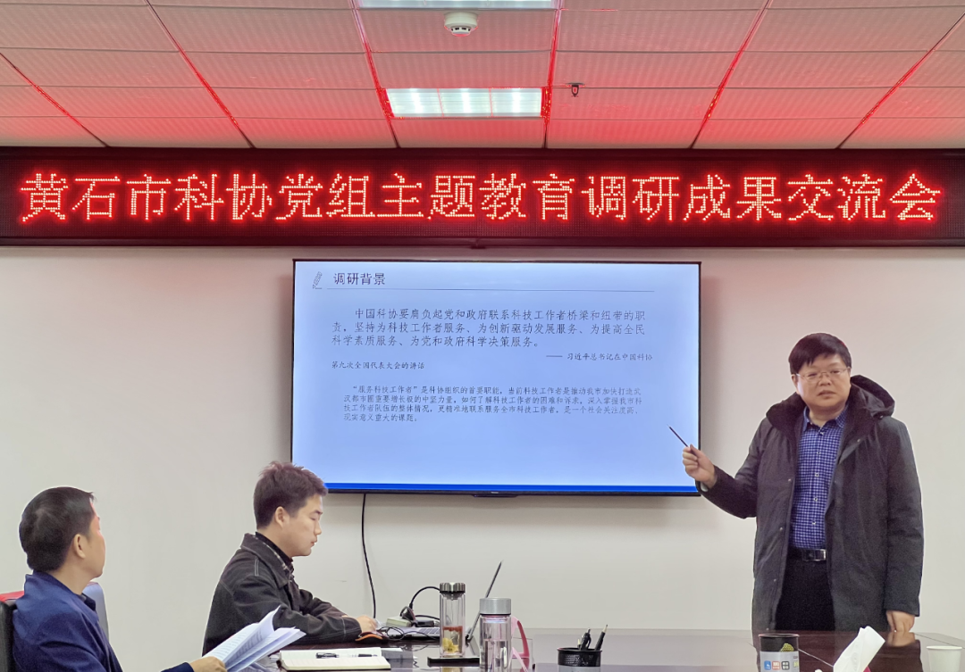 会上,班子成员分别围绕黄石市科技工作者状况、提升我市科普教育基地功能、科普阵地助力“双减”路径探索等调研主题作交流发言,并围绕正反典型案例进行了深入剖析研讨。大家一致认为,推进科协事业高质量发展,必须主动沉到一线倾听基层科技工作者、科普重点人群声音,抓住工作的堵点难点,要始终坚持用习近平新时代中国特色社会主义思想武装头脑、指导实践、推动工作,并持续发扬市科协“守正创新、拼命奔跑、敢闯敢试、善作善成”的良好作风。通过成果交流,党组班子进一步深化了认识、凝聚了共识、明确了措施,为实实在在推动解决一批问题指明了方向。