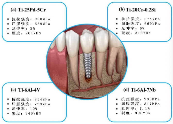 用于牙科种植体的各种钛合金及其相关机械性能