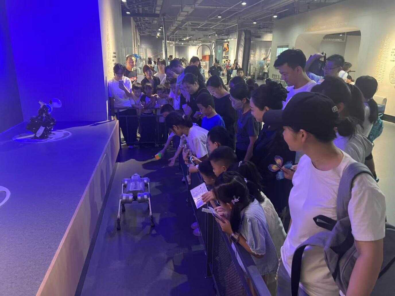 市民们与机器狗互动