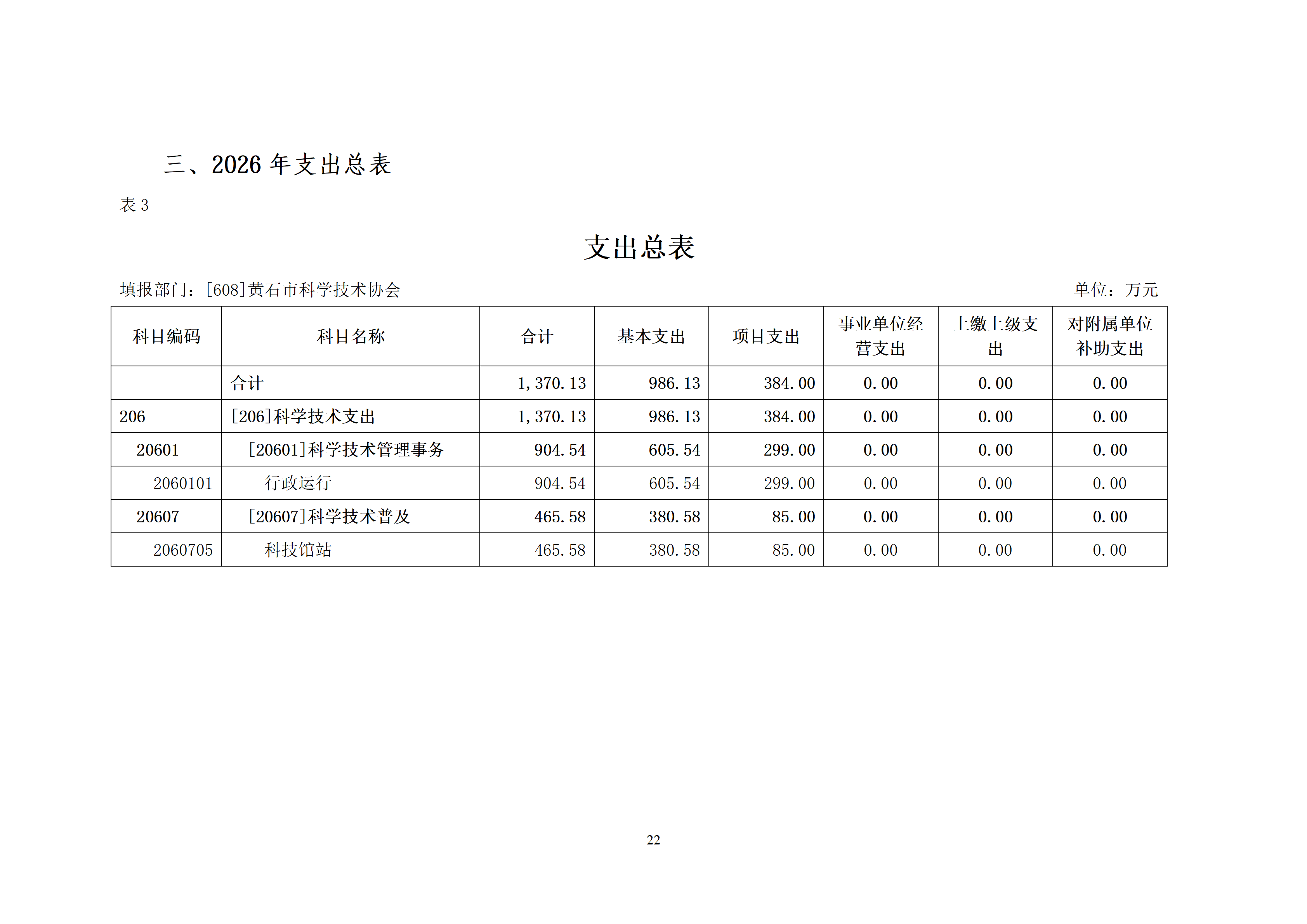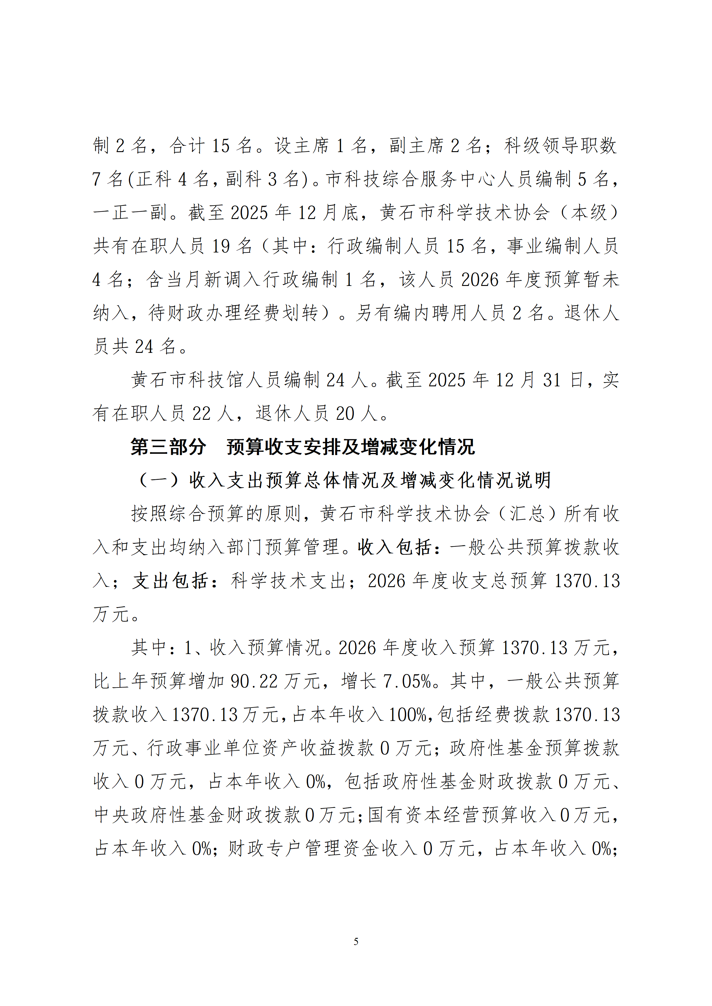 2026年度黄石市科学技术协会(汇总)部门预算公开情况说明