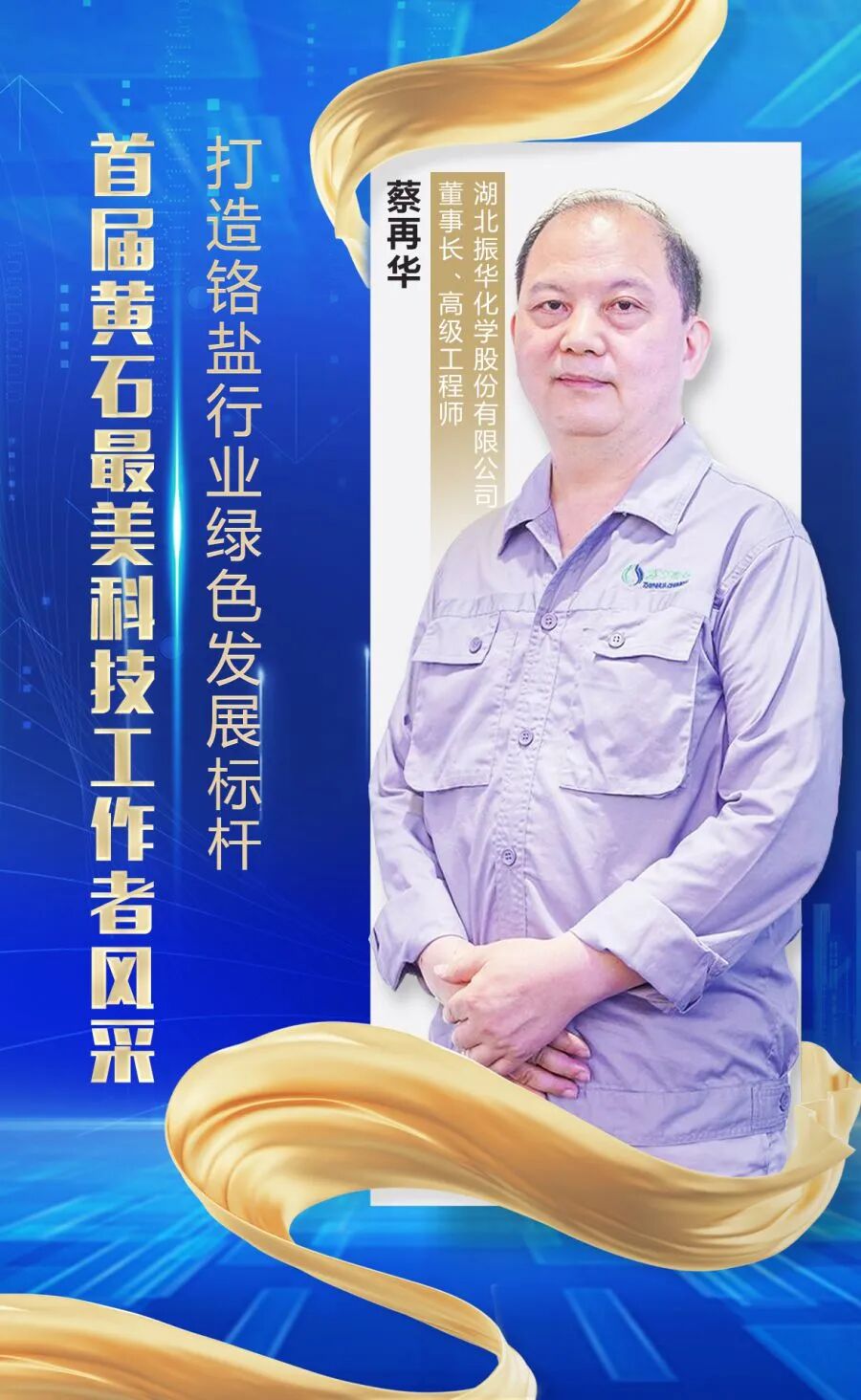 蔡再华经营振华化学30多年,通过科技研发和技术创新,让振华化学发展为全球最大的铬化学品和维生素K3生产商。他秉承生态优先、绿色发展的经营理念,开创全球铬化学品企业独有的“全流程循环经济与资源综合利用体系”,实现了铬盐副产品及其他固废资源无害化、高值化利用,一举变废为宝。