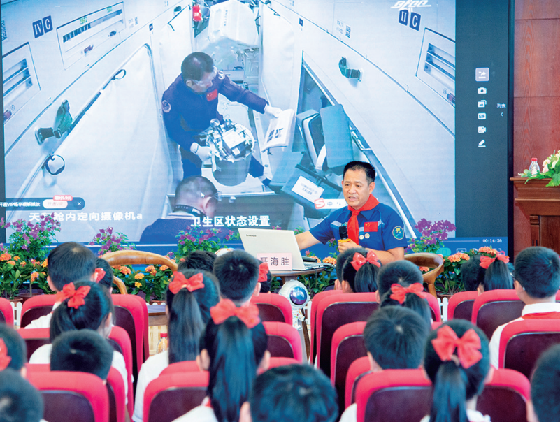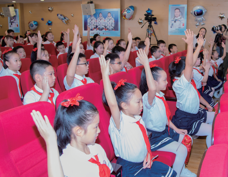 “航天员的艰辛是我们难以想象的,他们在每一次进入太空之前至少都要历经好几年的大强度训练,他们拼搏的精神值得我们学习,是我们向往的榜样力量。”在报告会现场,不少小朋友来到现场,聆听“聂伯伯”的报告。11岁的罗熙说,能与英雄航天员面对面地互动,点燃了她对航天的憧憬、对未知宇宙的探索兴趣。“希望将来有机会投身航天事业,逐梦星空,为我国建设航天强国贡献力量。”