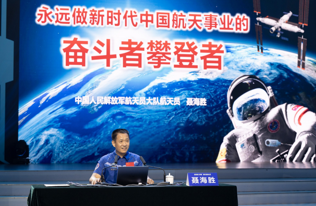 聂海胜以《永远做新时代中国航天事业的奋斗者攀登者》为题,围绕“第一次飞天 神舟六号·踏雪出征首圆梦,第二次飞天 神舟十号·太空授课播火种,第三次飞天 神舟十二号·天宫建站启新程”讲述了自己3次飞天的非凡经历,为大家普及了航天知识,树立了英雄榜样,充分展示了我国载人航天事业的发展历程和重大成就,生动诠释了伟大载人航天精神的价值内涵。