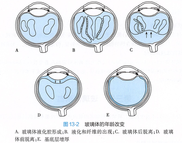 玻璃体代谢缓慢,不能再生,人出生时的玻璃体为凝胶状,大约在4岁时凝胶状的玻璃体就开始逐渐脱水收缩,透明质酸逐渐消耗溶解,胶原的稳定性被破坏,水与胶原分离,在玻璃体内形成液化腔,这一过程被称为玻璃体的液化。