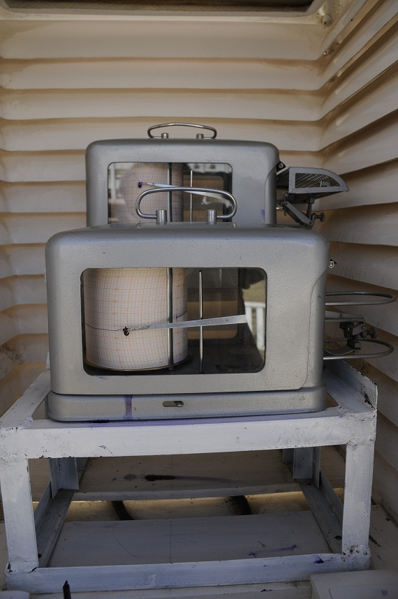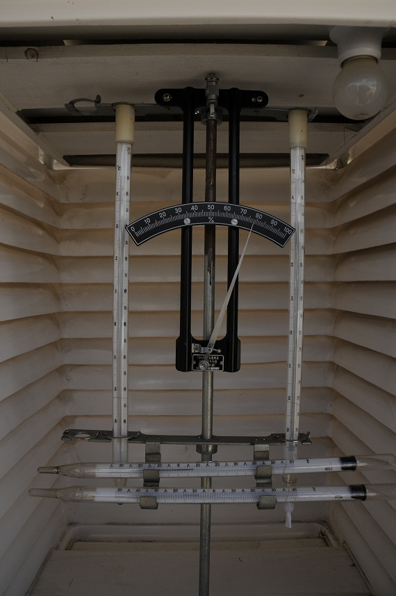 百叶箱中的温度计。(图片来源:作者提供)