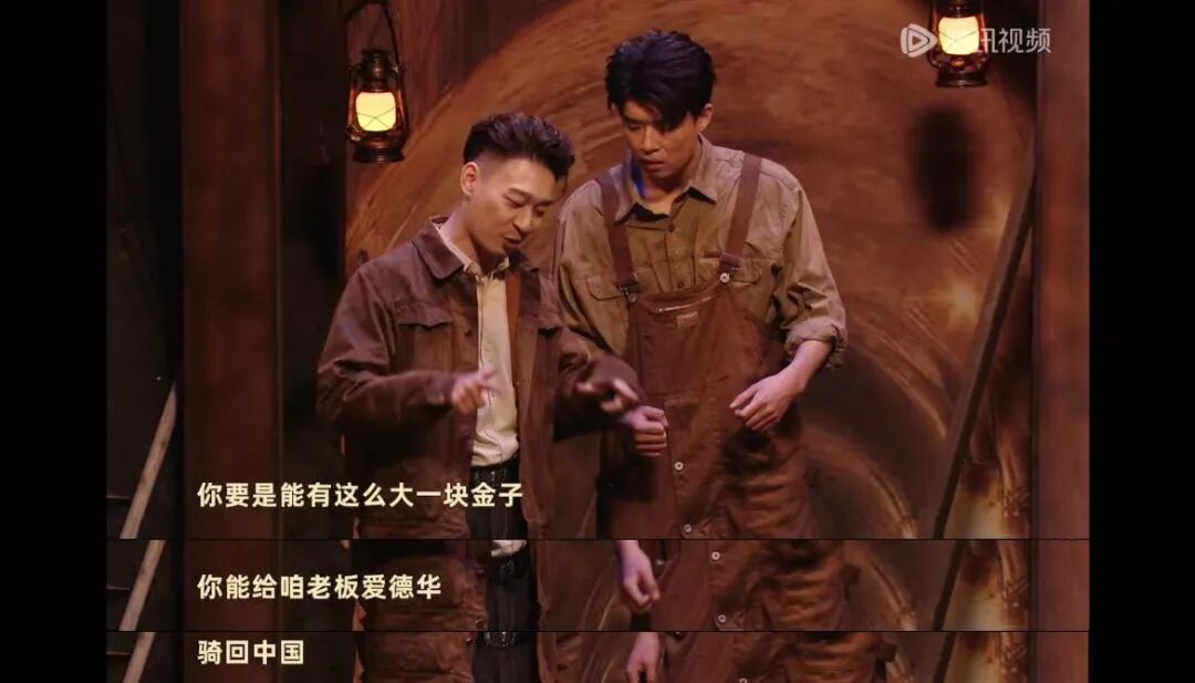 在“喜人奇妙夜”的节目中,演员雷淞然、张呈等人合作了一个有趣的作品《旧矿工故事》。在这个作品中,演员们身处 1860 年代美国西部的一个矿坑中,并且因为一块无意中被发现的金子(自然金,或者说狗头金),引发了矿工、工头和老板的一系列喜剧故事。