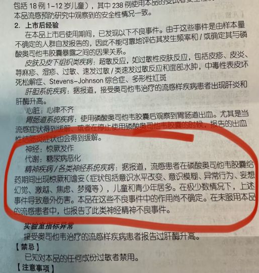 2、奥司他韦确实存在精神神经系统不良反应,需要警惕