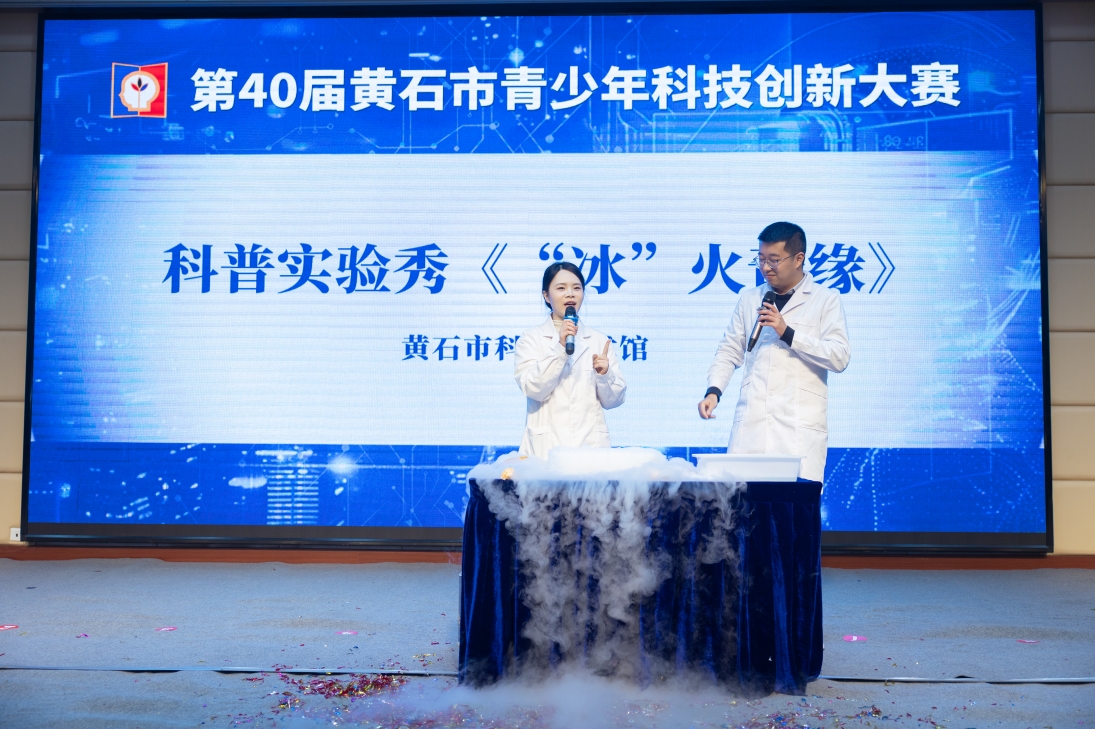 黄石市科技馆在第40届黄石市青少年科技创新大赛终评活动开幕式现场表演实验秀