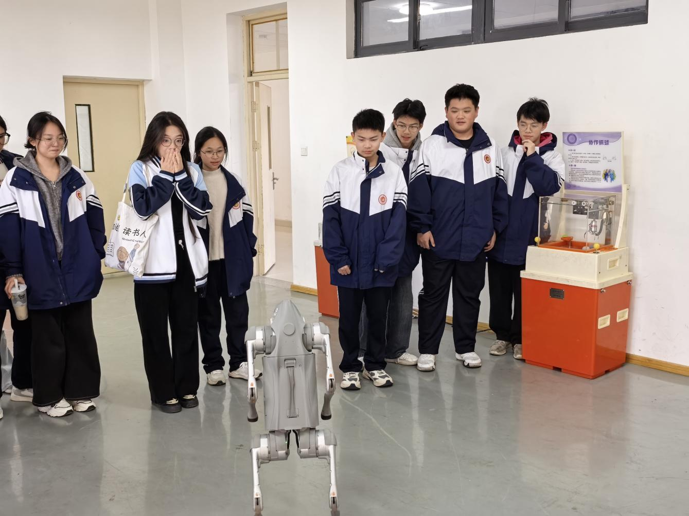 学生们与仿生机器狗互动