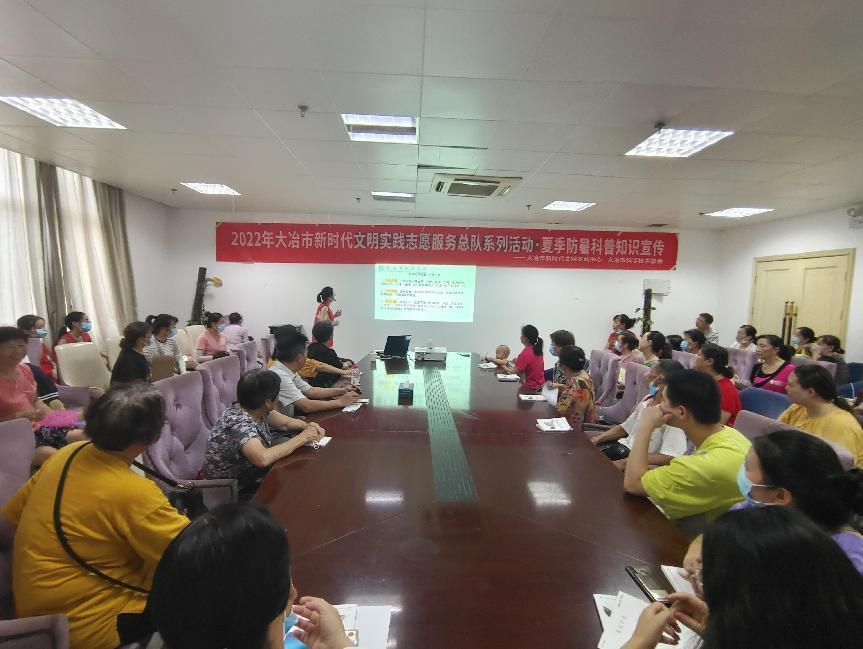 三伏天高温来临,气温逐渐升高,为了让居民了解如何预防中暑等“高温病”,宣传科学降温知识,避免高温给居民带来不适,7月19日上午,大冶市科协邀请中医院温萍医生到碧桂园社区开展夏季防暑知识讲座,共60余人参加此次讲座,发放科普书籍60余本。