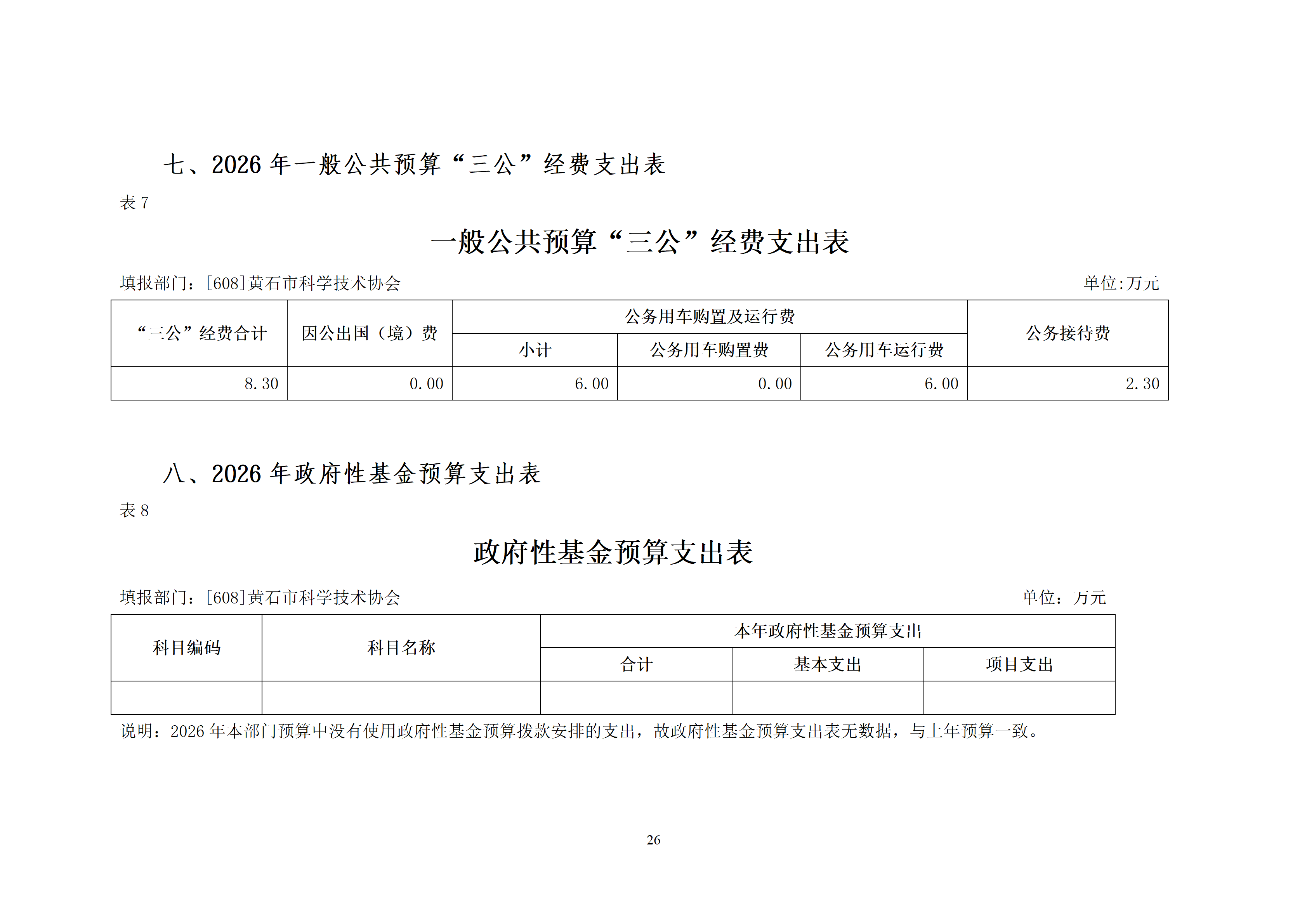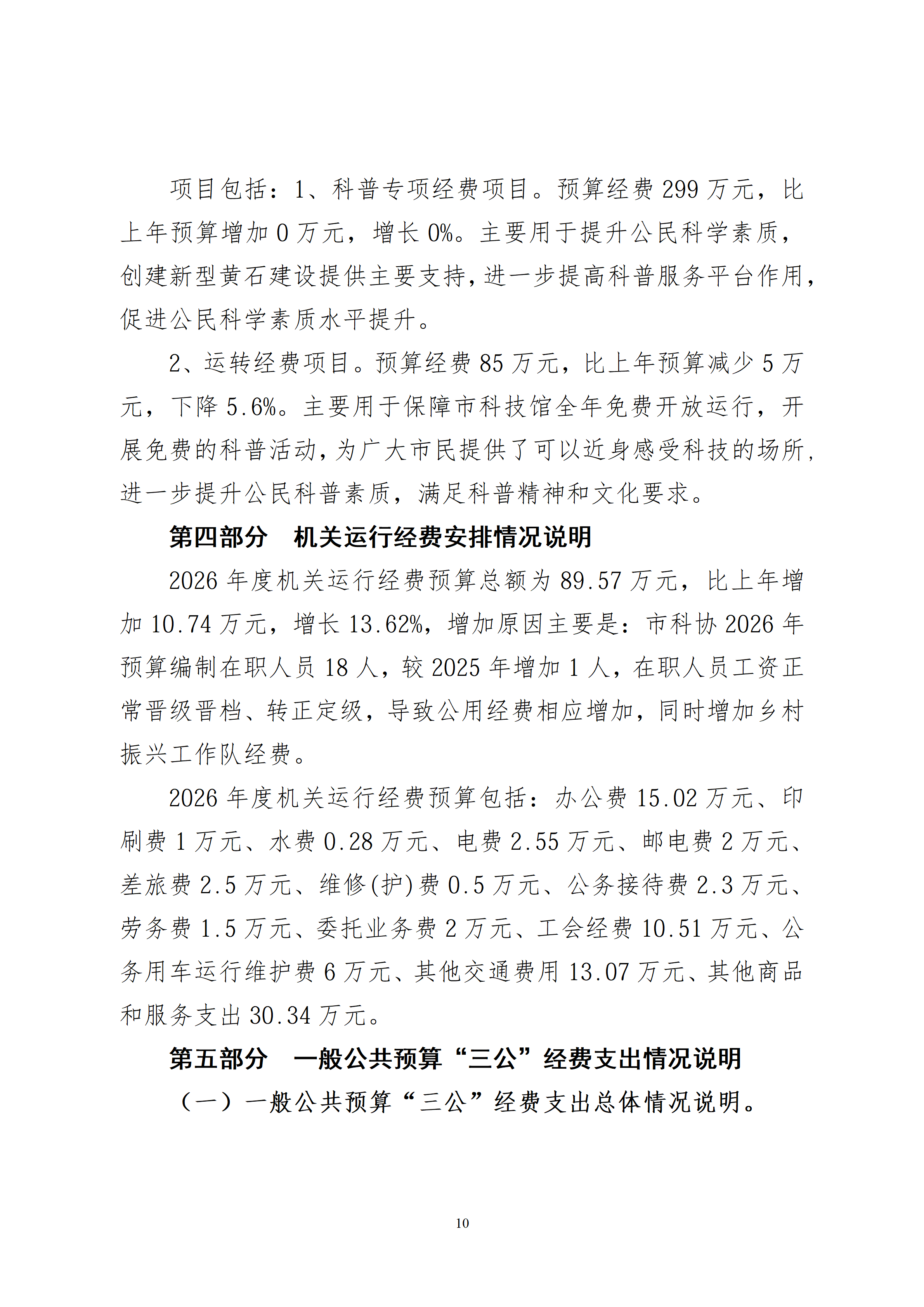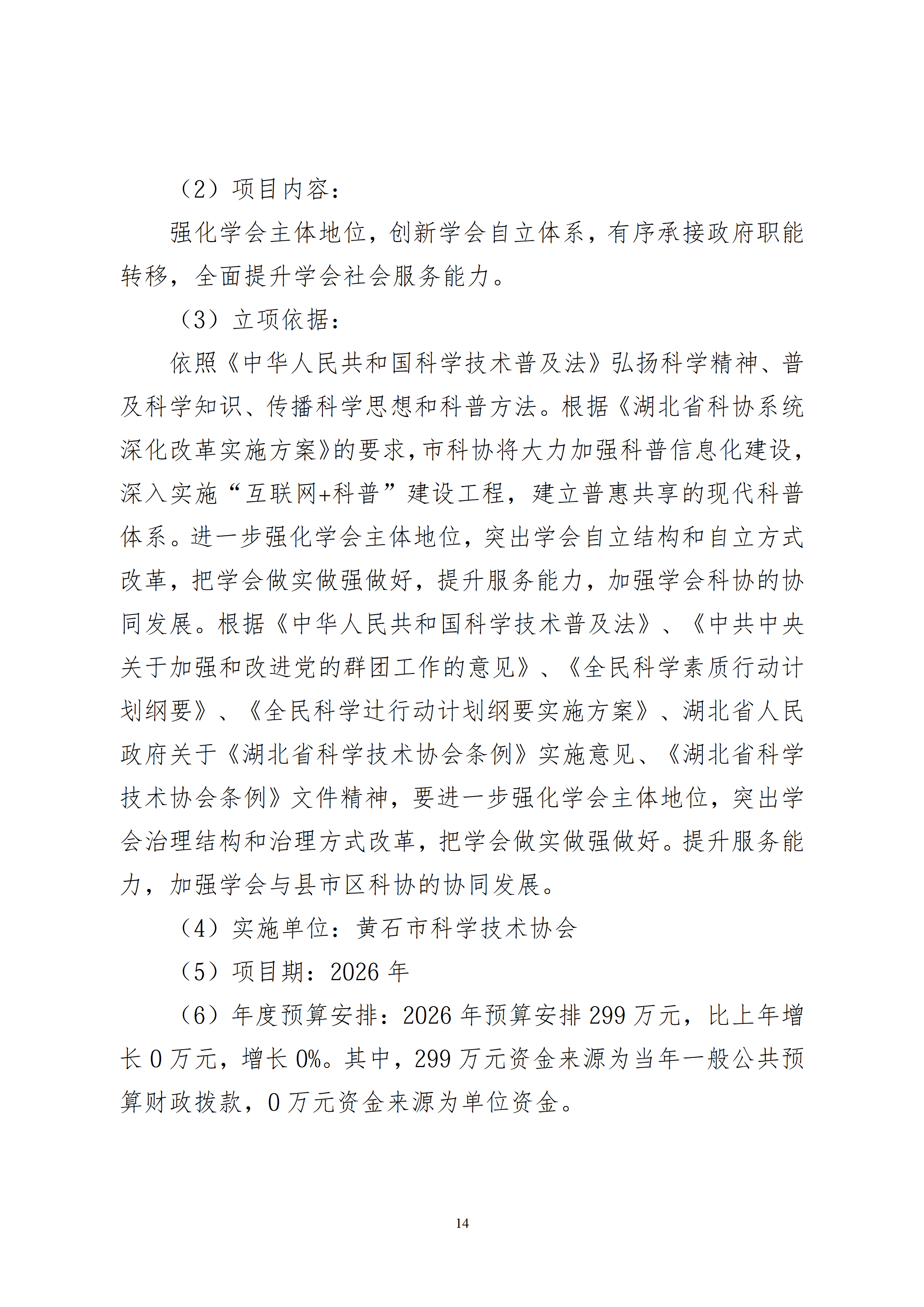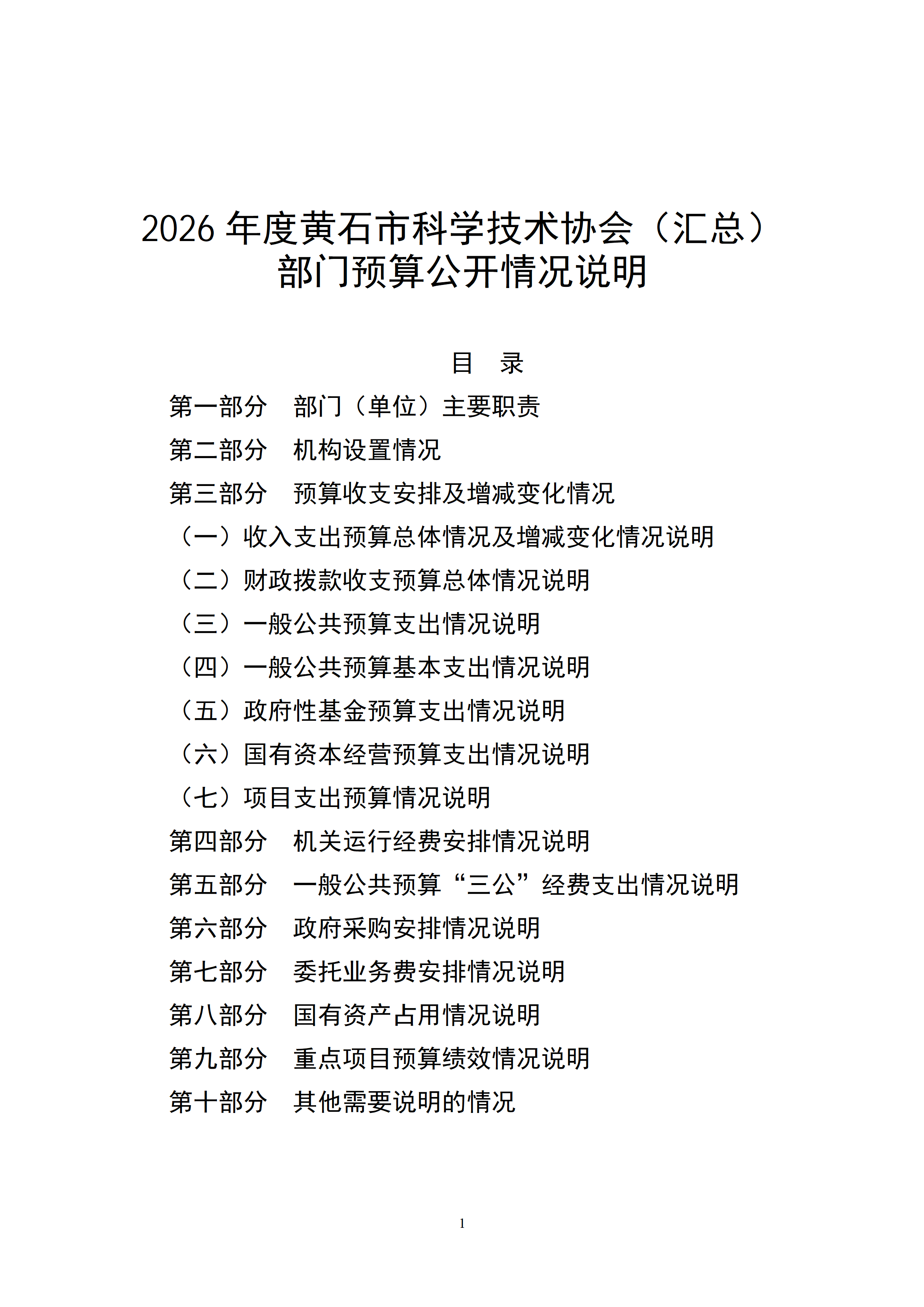 2026年度黄石市科学技术协会(汇总)部门预算公开情况说明