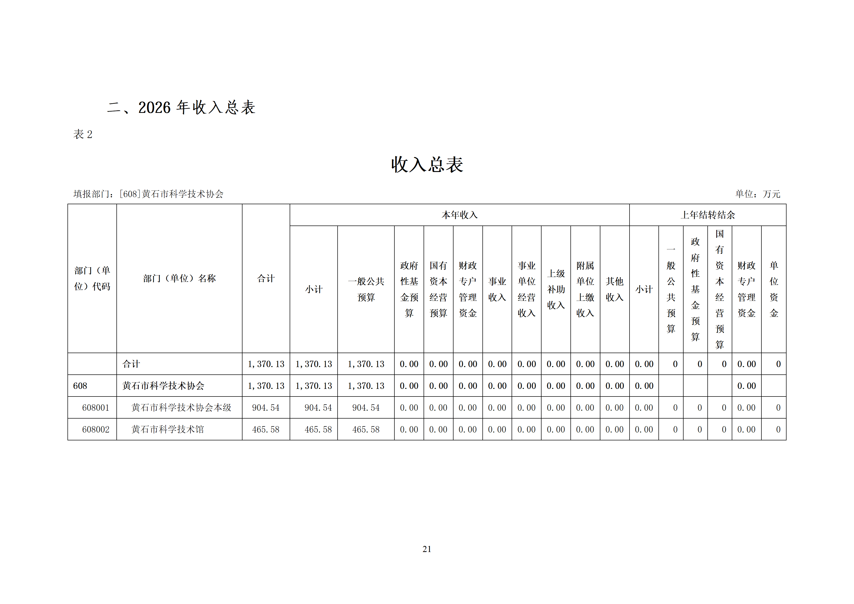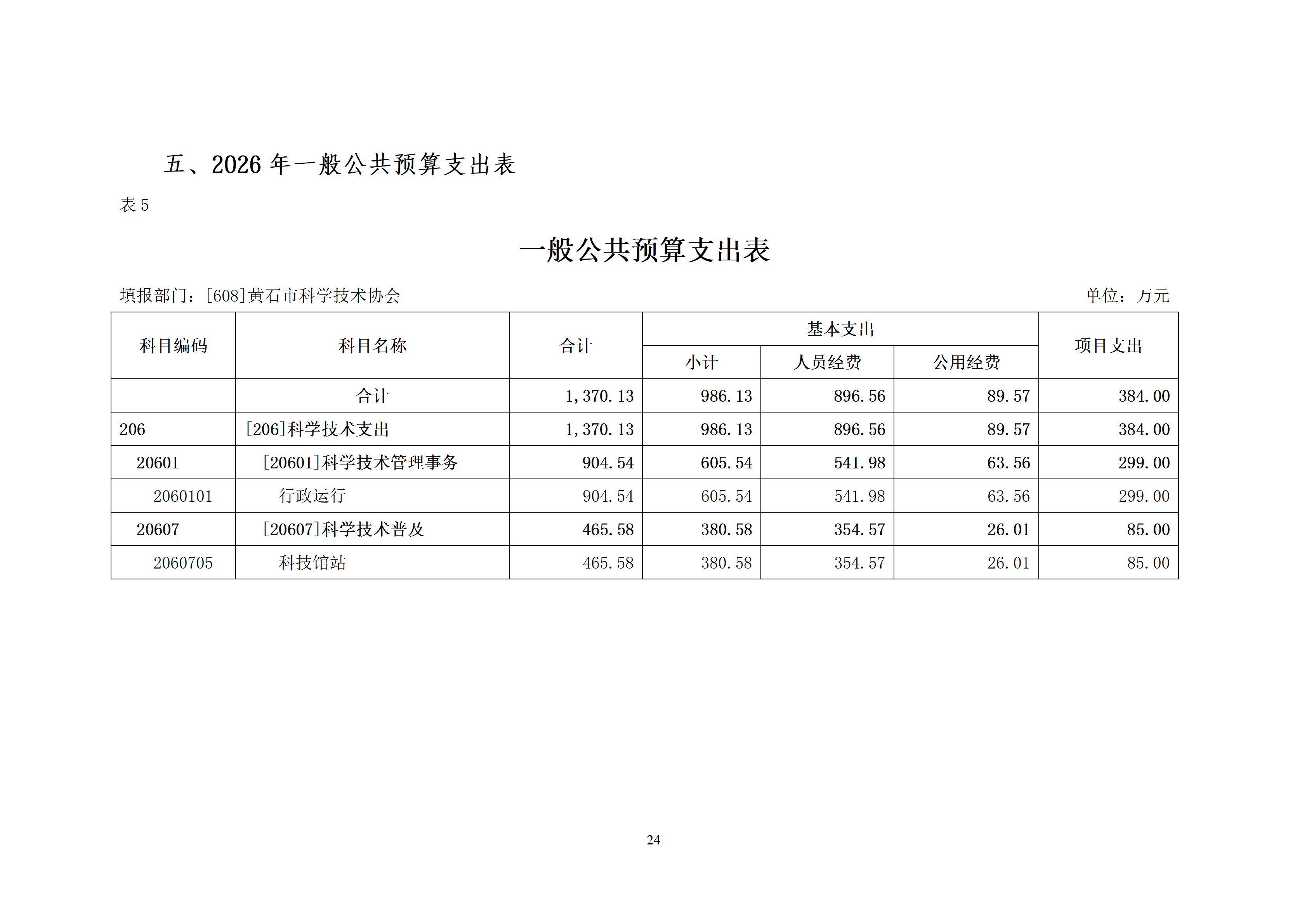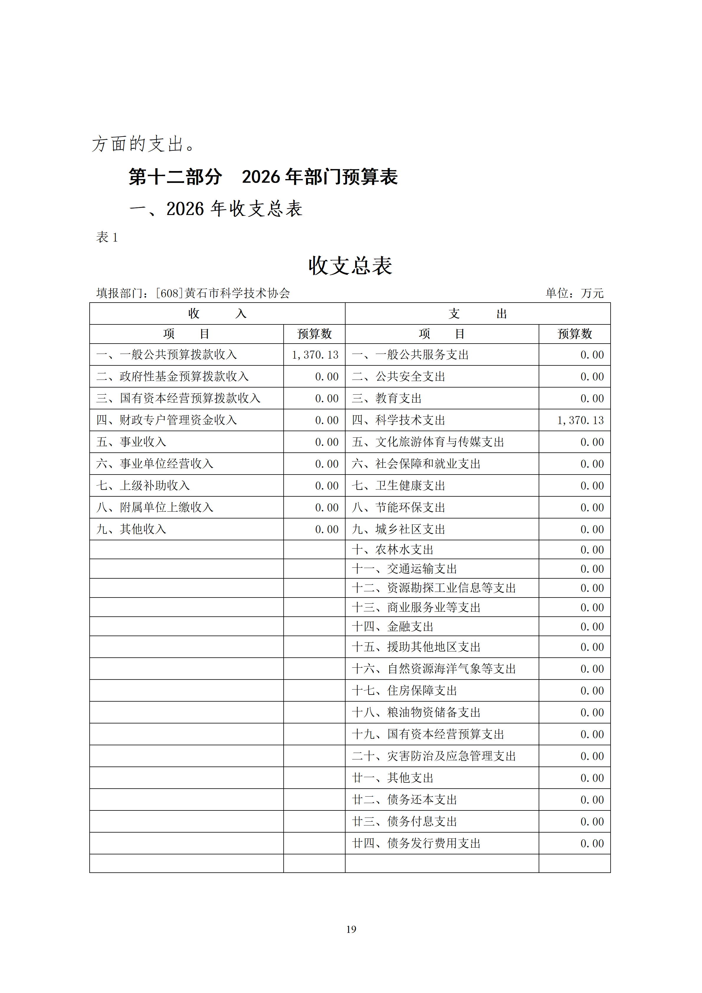 2026年度黄石市科学技术协会(汇总)部门预算公开情况说明