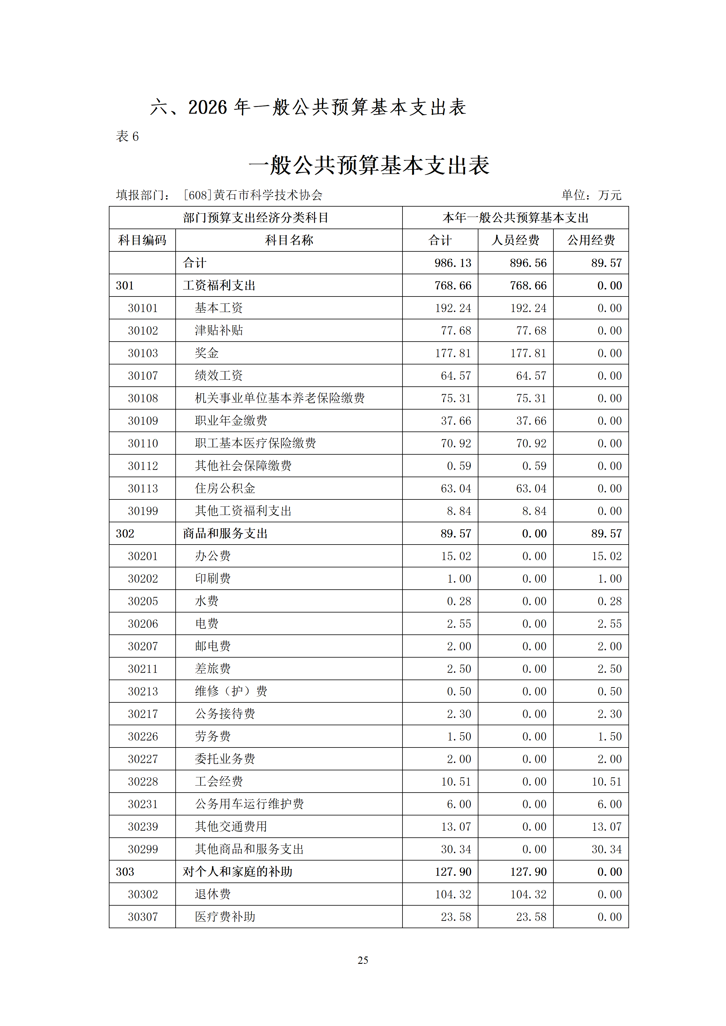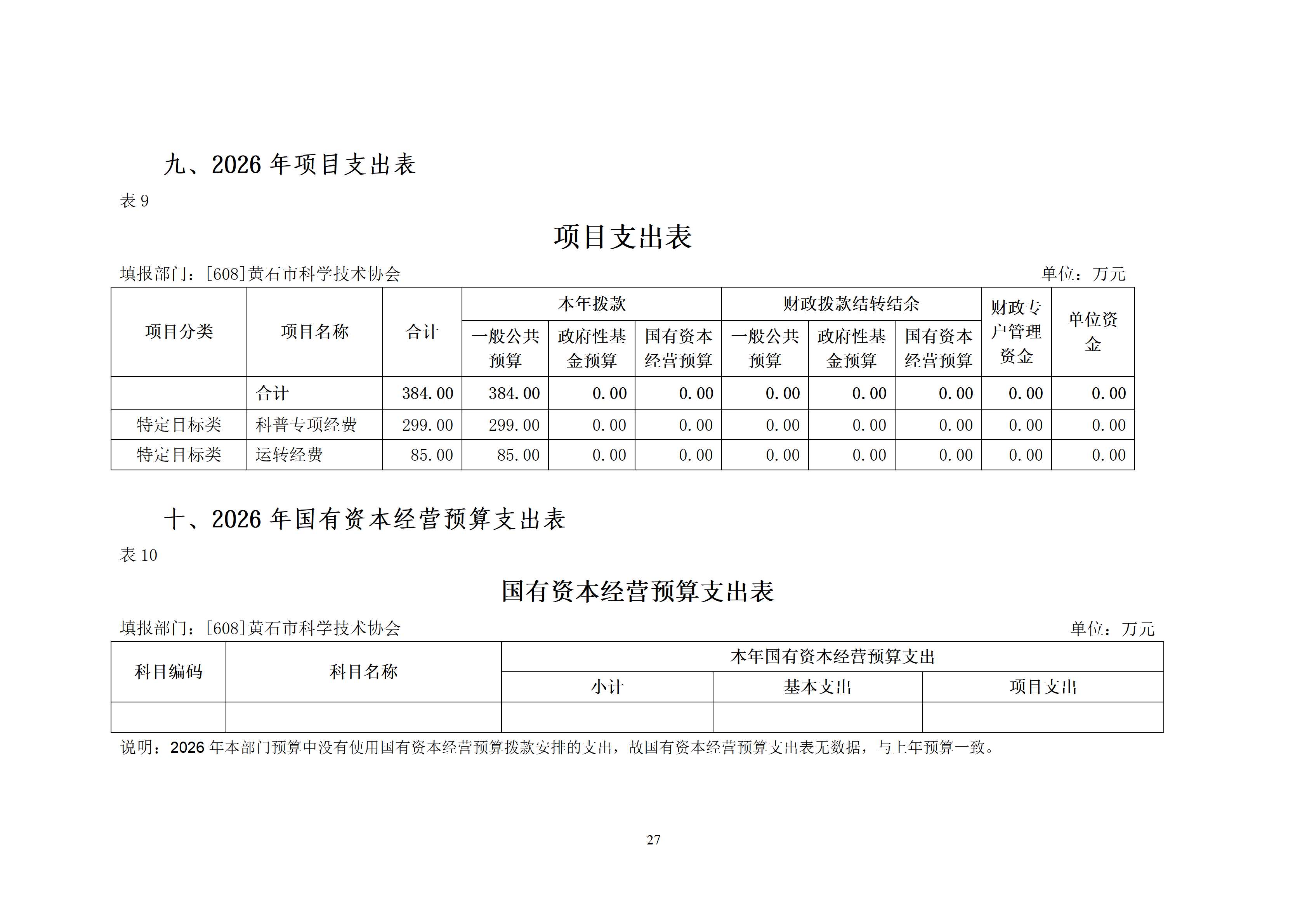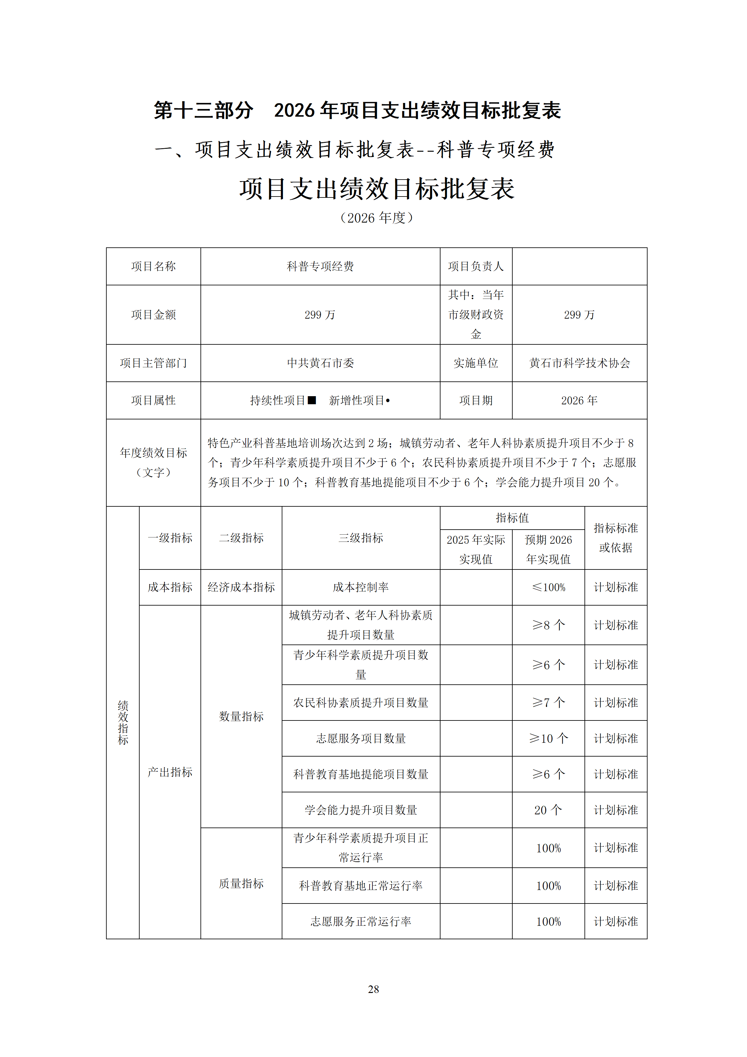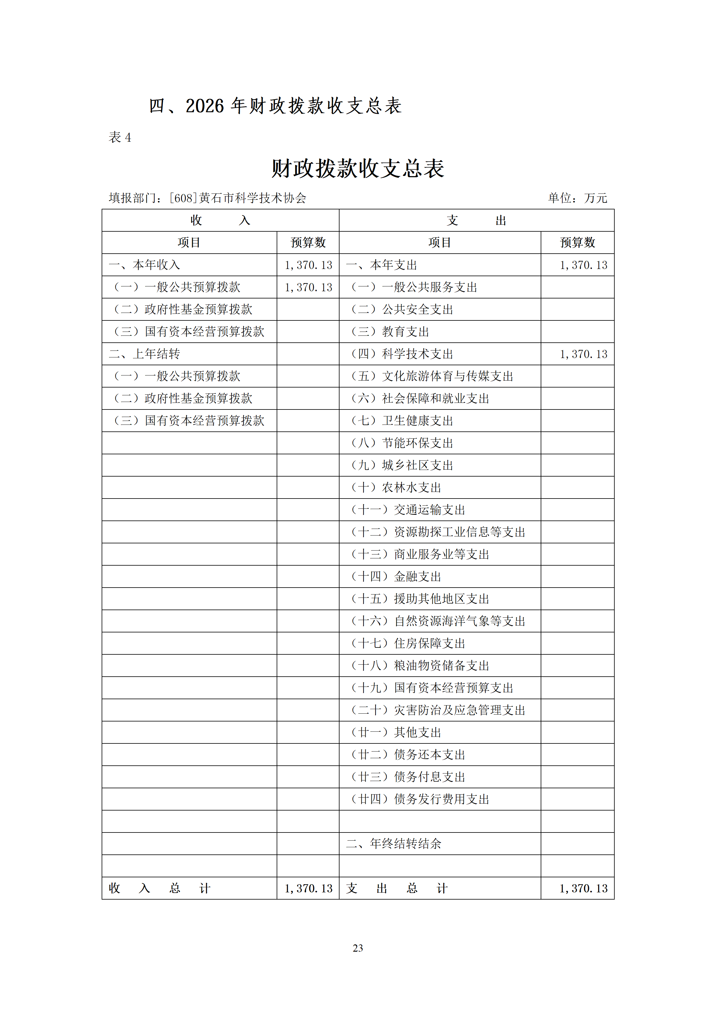 2026年度黄石市科学技术协会(汇总)部门预算公开情况说明